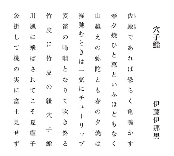 春眠や市井の声を遠くして 静岡 唐沢 静男 たらつぺと親しき呼び名野の馳走 群馬 柴山つぐ子 雪占を禰宜の見てゐる春祭 東京 杉阪 大和 静かなる水輪集めて梅雨の鯉 東京 武田 花果 五山はも安居迎ふる作務の中 東京 武田 禪次 だんだんに火勢を上ぐる山躑躅 埼玉 多田 美記 ぢき会ひに帰ると母に四月馬鹿 東京 谷岡 健彦 おもひでに少しくわらふ通夜朧 神奈川 谷口いづみ 骨壺の母と土手ゆく花曇 長野 萩原 空木 おそらくはどれも利き足蛸食らふ パリ 堀切 克洋 花衣脱ぎ弔ひへ急ぎけり 東京 松川 洋酔 あんぱんの臍の謂れや四月馬鹿 東京 三代川次郎 ![]() ![]() ![]() ![]() ![]() 綺羅星集作品抄伊藤伊那男・選