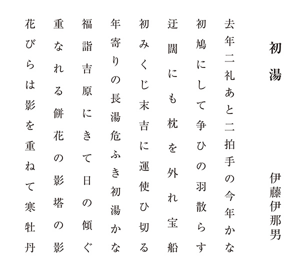 | 私は年賀状を出すことを止めてしまったが、二十代の初め以来一度も会わなかった方々とも遣り取りがあった。まさに生存確認といったところだ。五十年間延々とそれが続いている、と淡々と詠んでいるのが面白い。 |
