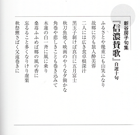 | 『辛夷』 原田 さがみ 『銀漢こぼれ噺』 伊藤 伊那男 『草紅葉』 大山かげもと 『マダンの風』 畔柳 海村 『留守詣』 武田 禪次 『庭の椅子』 島谷 高水 『初蝶』 伊藤 庄平 『漂白の俳人/井上井月』 伊藤 伊那男 |